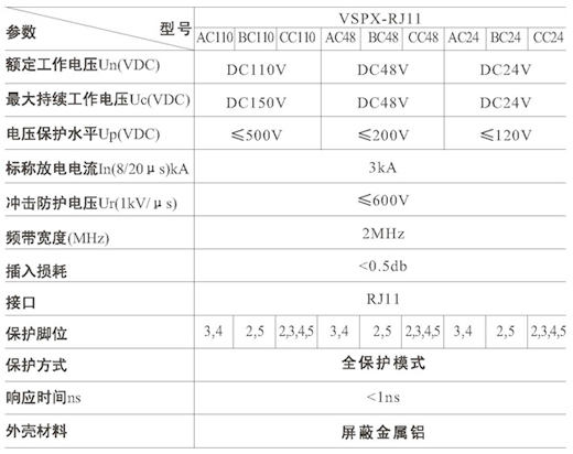 VSPX-RJ11系列信号电涌保护器(SPD)